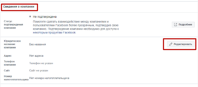 Чтобы вписать необходимые данные, нажмите кнопку «Редактировать». При заполнении внимательно следите за тем, чтобы имя и электронная почта совпадали с теми, что указаны в профиле и на домене сайта. Если будет допущена даже малейшая неточность, служба технической поддержки FB откажет вам в подтверждении. Это значит, что всю процедуру придется проходить заново.
