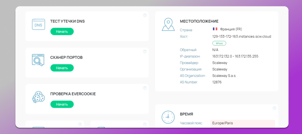 👉 Тоже популярный чекер, который ещё и предлагает свой VPN, а также отлично вычисляет использование других virtual privacy networks и прокси.
