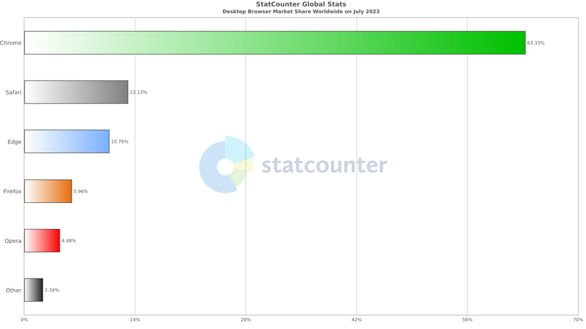 Вы когда-нибудь интересовались, сколько человек используют браузеры на базе Chromium? Таких пользователей — миллиарды. Например, на июль 2023 года около 63,32% людей использовали Google Chrome, который работает на базе движка Chromium: